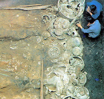 1988年3月20日,春寒料峭,风沙肆虐。赵卿墓的发掘正式开始。4月下旬,在墓葬填土中发现大量的河卵石与木炭块;随后,陆续出上了三件青铜戈、一件迄今所见春秋时期最大的铜鼎以及青铜礼器、金器、玉器、玛瑙器、水晶等大量贵重随葬品。同年6月初,墓室清理完毕;9月底,大墓东北侧陪葬车马坑发掘完毕。至此,赵卿墓及车马坑的发掘工作历时近半年之久才告结束。