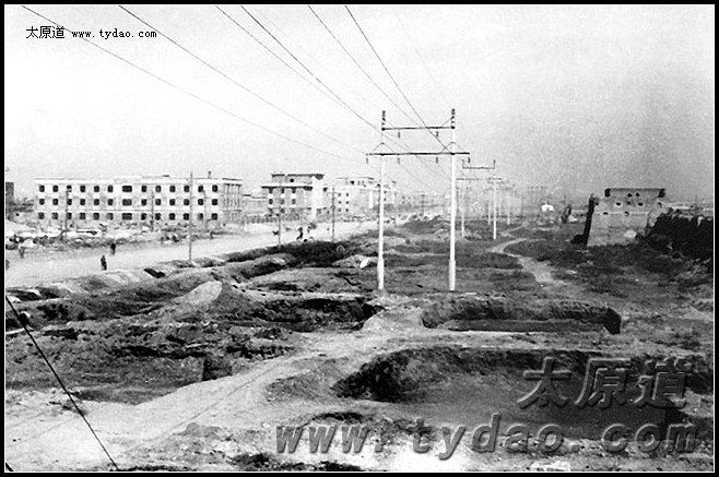 照片中的马路就是现在的新建路,新建路西侧的建筑群是太原市政府 |