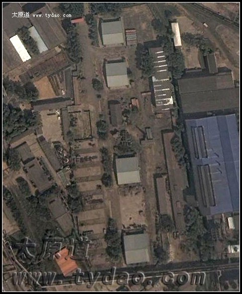 原阎军炼钢厂飞机库卫星地图,除四座机库外,碉堡也隐约可见 |