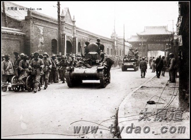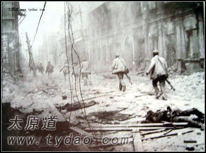 4月24日清晨,一颗颗红色信号弹撕裂了拂晓前的夜空,1300余门大炮齐声怒吼,向太原城墙猛烈轰击,霎那间,数以十万计的炮弹带着刺耳的呼啸倾泻于城垣,密集的爆炸声有如天崩地裂,厚重的城墙按压不住大地的颤抖,迸放的烈焰仿佛天空在燃烧,漫天的扬尘将整座城市笼罩于令人窒息的混沌之中。曾经巍然屹立600年的太原城墙在痛苦地支撑了一个多小时之后,开始一段段的崩塌,形成十几个宽达几十米的缺口,随后,炮火向城内延伸,攻城部队陆续从各个突破口攻入城垣,在经过激烈的巷战之后夺取绥靖公署,历时6个余月的太原战役宣告结束。 |