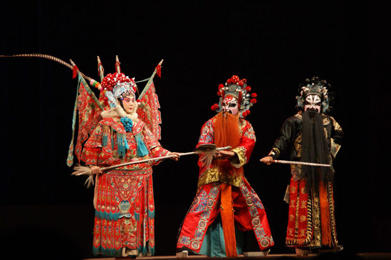 北路梆子是山西四大梆子之一,主要流行于晋北、内蒙古、陕北及张家口一带。新中国成立前,有“大戏”、“梆子戏”、“北路戏”、“代州梆子”等称谓,1954年山西省首届戏曲观摩演出大会定名为“北路梆子”。 北路梆子兴起于明末清初,形成地区以忻、代二州为中心,南起太原府,北至古长城,西跨黄河两岸,东起蔚州四围,占据着十分重要的地理位置,是黄、汾流域通向北京和口外的主要大道,官车商旅,络绎不绝。历来有重兵驻扎,五方杂处,方言交混,为本地剧种的形成和外来剧种的活动提供了有利条件。明末清初,形成于陕西同州和山西蒲州一带的以“奚琴”和梆子戏为主要乐器的“山陕梆子”开始向四面扩散传播,北路梆子就是在山陕梆子北传的基础上形成的。北路梆子的老艺人代代相传,学的是 “陕西梆子蒲州调”。它最显著的特征是以山陕梆子“花音”乱弹为基本唱腔而发展变化,扬弃其“苦音”乱弹,但保留“4”与“7”两个音作上句结尾以表现悲苦色彩。从唱腔旋律、节奏、曲体、调式等方面比较,北路梆子和同州梆子的“花音”乱弹近似,道白用“蒲白”。 清乾隆至咸丰年间为北路梆子的成熟期,其标志:一是有了本地固定班社,如大成班、吉庆班、自成班、贵林班、兴顺班等;二是有了比较丰富而完整的剧目,除保留了《打枣》、《打灶君》一类的生活小戏外,主要是反映历史生活的大戏,如《龙凤剑》、《朱仙阵》等;三是有了一些名艺人,但多以蒲州籍艺人为主;四是有了一整套完善的演出规例,每台戏一般唱三天,分别称“起日”、 “正日”、“末日”或“起唱”、“正唱”、“末唱”,每天唱日夜两场叫“两开戏”或“两开箱”。这些称呼一直沿用至今。清同治年间至抗日战争前是北路梆子的鼎盛时期。这一时期班社众多,仅在晋北忻、代二州辖境与蔚州部分舞台留下名的班社就达六十多个,据粗略统计,总数约有一百多个,它们分别活动于山西北中部、内蒙古中西部、河北西北部及陕西最北部,个别班社更远涉库伦(今蒙古国乌兰巴托)及甘肃兰州。这一时期名家众多,仅进京献艺享名的就有“十三旦”侯俊山、“十三红”孙培亭、“云遮月”刘德荣、“盖七省”董瑞喜等,本地名角更是数不胜数。抗日战争开始后,北路梆子班社基本解散,虽然晋绥根据地和内蒙古西部还有一点零星演出活动,但再无人办科班,只是由于民间“吹戏”的传承才使其唱腔得以保存下来。 北路梆子的艺术特色有三个:一是生活气息浓郁;二是语言通俗流畅;三是重唱。北路梆子的行当号称“红黑生旦丑”五大行。北路梆子的音乐包括唱腔、曲牌、锣鼓经三部分。 北路梆子现保存有传统剧目四百多个,绝大多数是表现帝王将相、忠臣义士、才子佳人、烈女节妇的。其中经整理改编的 《金水桥》于1980年由中央新闻纪录电影制片厂拍摄成戏曲艺术片,此外还有一些在省内外较有影响的剧目,如《王宝钏》、《血手印》等。北路梆子有一支行当齐全、阵容整齐的演员队伍,既有像李万林、翟效安、任建华、张秀莲等一批老一辈表演艺术家,又有杨仲义、成凤英、贾粉桃、张彩萍等一大批年轻的、多次获奖的中坚力量,在全国戏曲界影响颇大。 ■ |