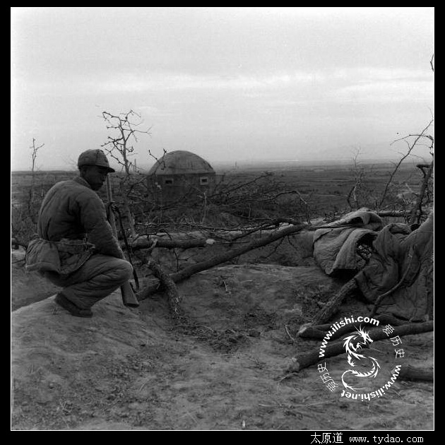 正在警戒的士兵,他的前方是一座蘑菇碉
