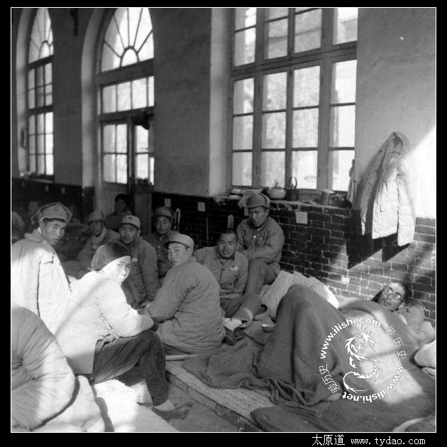 这张照片中出现了一位穿便服的老妇人,来探望亲人的军属?