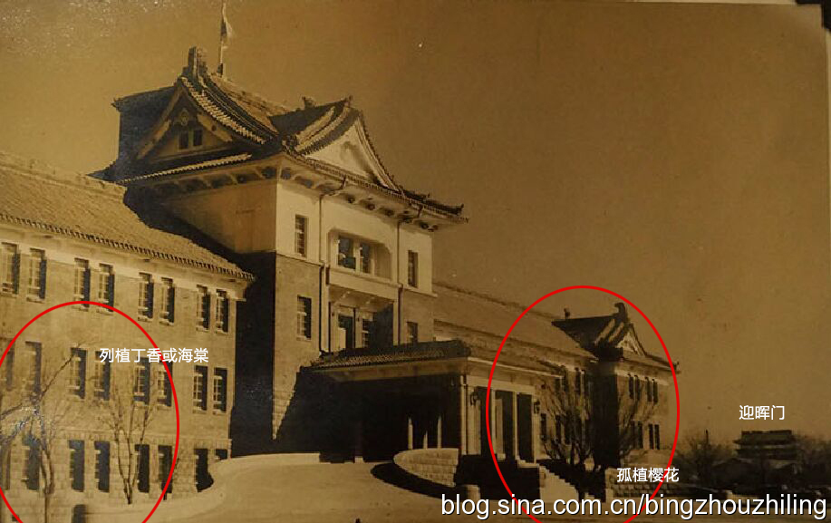 大楼入口有东西坡道直通二层门廊。司令部内院也进行了绿化。鉴于历史影像的拍摄季节与有限的清晰度,笔者认为彼时在大楼前孤植的可能是樱花,在建筑墙体基础前列植的可能是海棠或丁香(图3),在这森严壁垒的山西日军指挥中枢,每到春季,花海闻香,一片祥和,而院外却四处屠杀奴役掠夺,制造惨案,血债累累,如此反差,让人不禁唏嘘。 |