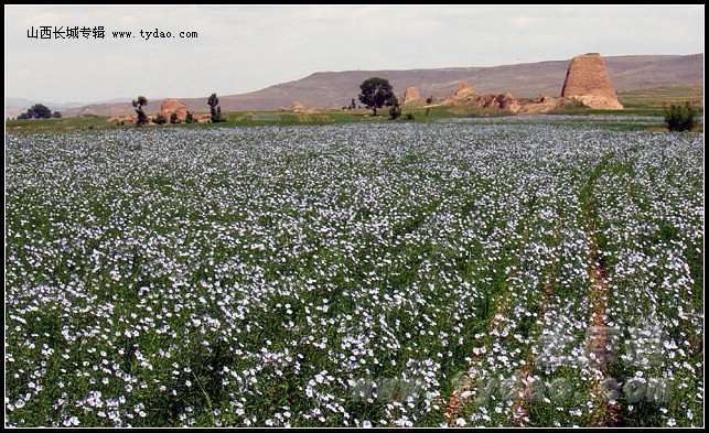 长城两侧遍种胡麻,淡蓝色的小花开遍原野