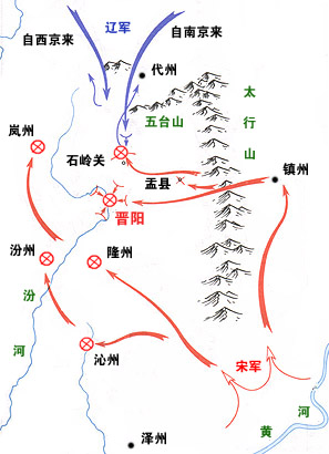 靳生禾教授解释说,北汉其实是托庇于契丹辽国羽翼之下的小朝廷,而辽国为自己生存以至南进计,也绝对不希望中原出现一个强大的王朝。所以,征北汉、拔太原的关键所在是如何割断北汉与辽国的联系,使其丧失强援。有鉴于此,宋朝特别任命时为云州观察使的名将郭进为太原石岭关都部署(负责石岭关攻防的军事长官),以断辽援。