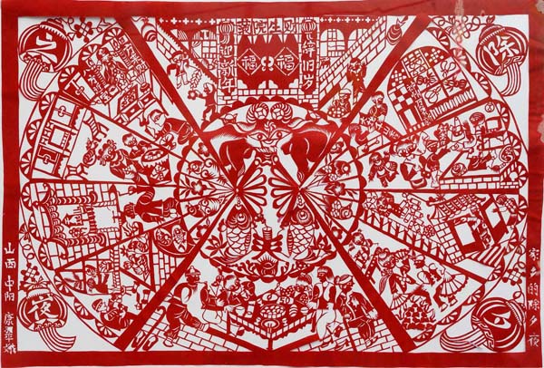 中阳县庞家会村农民康翠娥的剪纸作品《家乡的除夕夜》