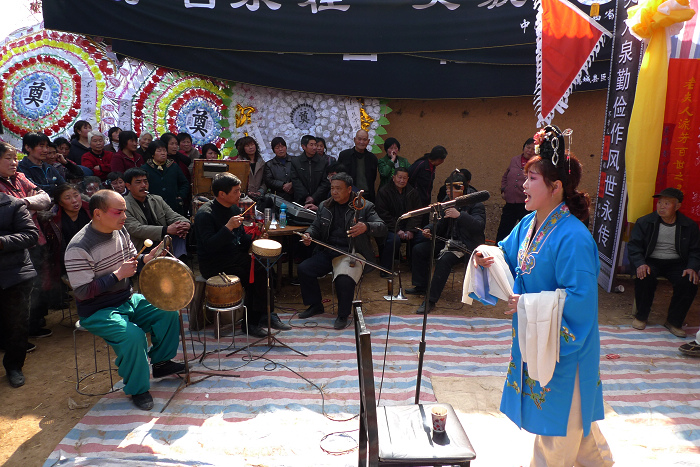 如今在晋南的农村,仍然保留着婚丧嫁娶中蒲剧表演助兴的形式,拍摄于翼城县
