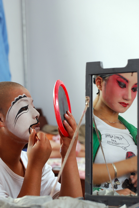 蒲剧演员在化妆