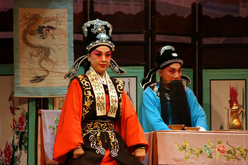 北路梆子是山西四大梆子之一,主要流行于晋北、内蒙古、陕北及张家口一带。新中国成立前,有“大戏”、“梆子戏”、“北路戏”、“代州梆子”等称谓,1954年山西省首届戏曲观摩演出大会定名为“北路梆子”。 北路梆子兴起于明末清初,形成地区以忻、代二州为中心,南起太原府,北至古长城,西跨黄河两岸,东起蔚州四围,占据着十分重要的地理位置,是黄、汾流域通向北京和口外的主要大道,官车商旅,络绎不绝。历来有重兵驻扎,五方杂处,方言交混,为本地剧种的形成和外来剧种的活动提供了有利条件。明末清初,形成于陕西同州和山西蒲州一带的以“奚琴”和梆子戏为主要乐器的“山陕梆子”开始向四面扩散传播,北路梆子就是在山陕梆子北传的基础上形成的。北路梆子的老艺人代代相传,学的是 “陕西梆子蒲州调”。它最显著的特征是以山陕梆子“花音”乱弹为基本唱腔而发展变化,扬弃其“苦音”乱弹,但保留“4”与“7”两个音作上句结尾以表现悲苦色彩。从唱腔旋律、节奏、曲体、调式等方面比较,北路梆子和同州梆子的“花音”乱弹近似,道白用“蒲白”。 清乾隆至咸丰年间为北路梆子的成熟期,其标志:一是有了本地固定班社,如大成班、吉庆班、自成班、贵林班、兴顺班等;二是有了比较丰富而完整的剧目,除保留了《打枣》、《打灶君》一类的生活小戏外,主要是反映历史生活的大戏,如《龙凤剑》、《朱仙阵》等;三是有了一些名艺人,但多以蒲州籍艺人为主;四是有了一整套完善的演出规例,每台戏一般唱三天,分别称“起日”、 “正日”、“末日”或“起唱”、“正唱”、“末唱”,每天唱日夜两场叫“两开戏”或“两开箱”。这些称呼一直沿用至今。清同治年间至抗日战争前是北路梆子的鼎盛时期。这一时期班社众多,仅在晋北忻、代二州辖境与蔚州部分舞台留下名的班社就达六十多个,据粗略统计,总数约有一百多个,它们分别活动于山西北中部、内蒙古中西部、河北西北部及陕西最北部,个别班社更远涉库伦(今蒙古国乌兰巴托)及甘肃兰州。这一时期名家众多,仅进京献艺享名的就有“十三旦”侯俊山、“十三红”孙培亭、“云遮月”刘德荣、“盖七省”董瑞喜等,本地名角更是数不胜数。抗日战争开始后,北路梆子班社基本解散,虽然晋绥根据地和内蒙古西部还有一点零星演出活动,但再无人办科班,只是由于民间“吹戏”的传承才使其唱腔得以保存下来。 北路梆子的艺术特色有三个:一是生活气息浓郁;二是语言通俗流畅;三是重唱。北路梆子的行当号称“红黑生旦丑”五大行。北路梆子的音乐包括唱腔、曲牌、锣鼓经三部分。 北路梆子现保存有传统剧目四百多个,绝大多数是表现帝王将相、忠臣义士、才子佳人、烈女节妇的。其中经整理改编的 《金水桥》于1980年由中央新闻纪录电影制片厂拍摄成戏曲艺术片,此外还有一些在省内外较有影响的剧目,如《王宝钏》、《血手印》等。北路梆子有一支行当齐全、阵容整齐的演员队伍,既有像李万林、翟效安、任建华、张秀莲等一批老一辈表演艺术家,又有杨仲义、成凤英、贾粉桃、张彩萍等一大批年轻的、多次获奖的中坚力量,在全国戏曲界影响颇大。 ■ |