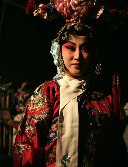 开戏之前,戏班的乐师们总会一阵响彻村镇的敲打,之后这种古老的板腔体,才会正式拉开架势,闪亮登场