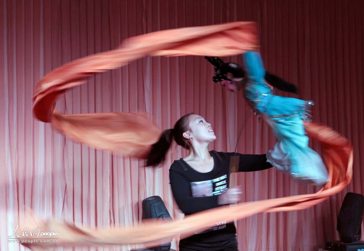 2011年3月11日,孝义木偶戏艺人在表演木偶长绸舞《霜月婵娟》(图一至图七由詹彦拍摄)