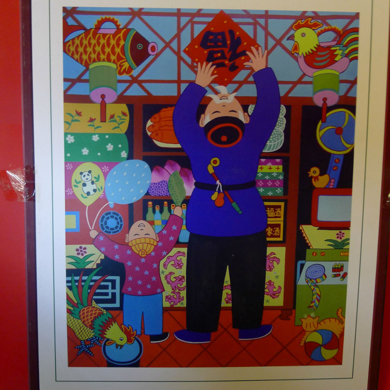由于这些题材内容的含义,寄寓了人们对幸福生活的向往与希冀,故而倍受人们的喜爱,并作为“保留节目”传流不衰。由于这些画面都以饱满的构图,艳丽的色彩,生动精细的刻画而引人注目,故而享受着主人们的“重点保护”,有的是以透明的塑料薄膜遮罩;有的则专门串一“茭箭排排’挡尘御气。只有在亲朋好友上门或左邻右舍相聚时,方才展示夸耀,其珍爱之心可见一斑。