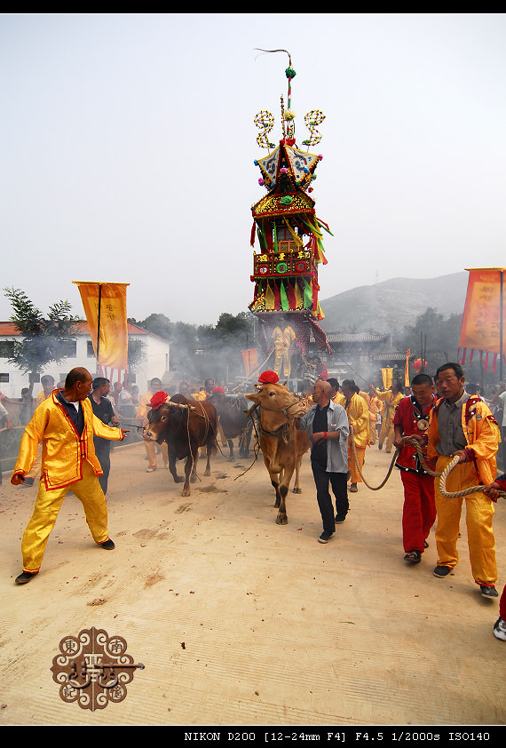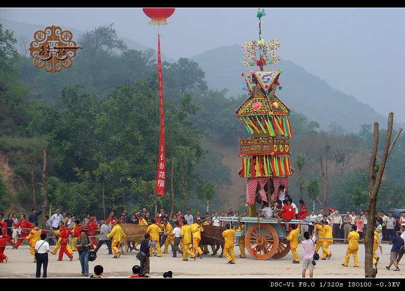 清朝咸丰年间岁贡牛联奎老先生作诗盛赞:“四景神车不计年,八村五社会流传,赛朝例卜三春幕,宴酒先尝二月天。二十四马楼列后,几重社鼓引当前。东下南北西流转,崇奉丹宵太乙仙。”