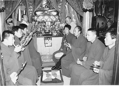 左云县楞严寺寺庙音乐流传于左云及内蒙古自治区的凉城县一带,原属中国北方梵呗声腔的东路流派,伴随着僧侣们的唱经及佛事活动,产生、唱响于明朝初年,丰富、发展在明、清两代。而在长期的流传过程中,其还吸纳了天竺乐、龟兹乐、安国乐等佛曲音乐的元素,并和当地民间音乐相结合,逐步形成了一种具有蒙汉特色、异域风情的寺庙音乐。 |