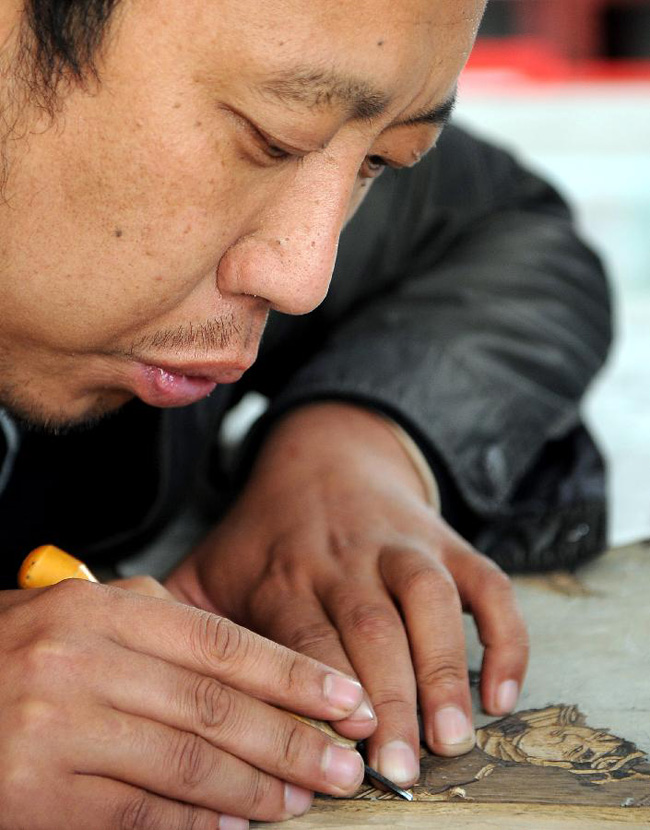 今年36岁的赵国琦是平阳木版年画的传承人。十几年来,在广泛收集旧木版年画的基础上,他一直致力于研究、整理、创新木版年画。在他的努力下,平阳木版年画逐渐得到更多人的认同,并作为民间工艺品在文化市场上赢得一席之地。山西临汾平阳木版年画是我国最古老的年画之一,距今已有近千年的历史,2008年被列入第二批国家级非物质文化遗产名录。(新华社记者燕雁摄) ■ |