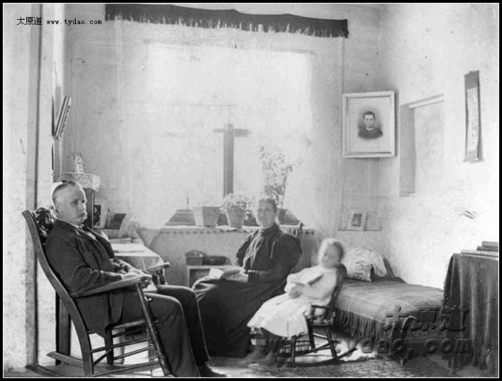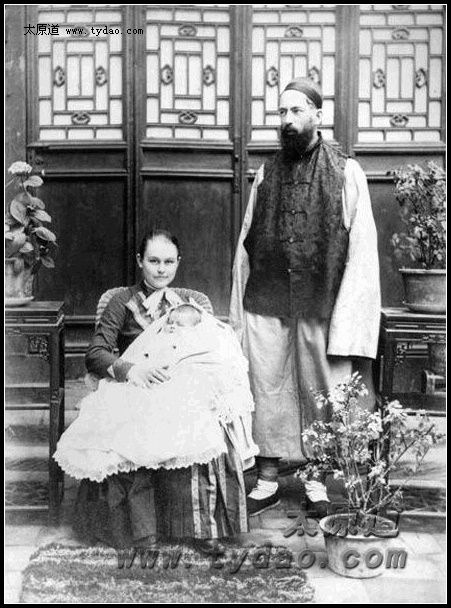 在汾州教会的Charles与Eva Price夫妇和女儿Florence,