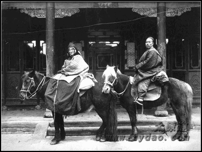 传教途中的MARY LOUISE PARTRIDGE(左,1900年7月31日在太谷被杀)和助手 |