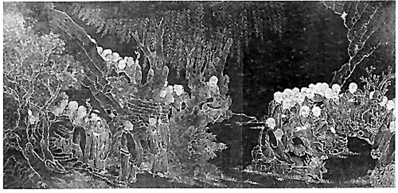 祗园,全称“祗树给孤独园”或“祗园精舍”,是印度佛教圣地之一,相传释迦牟尼在此说法,祗园为祗陀太子、给孤独长者两人合力所盖,称为“祗树给孤独园”。佛家著名的经典《楞严经》也是在这个地方开始讲授的,这个园林是佛的大讲堂,佛祖经常在这里说法,前后宣扬佛教达二十余年。这幅现展出于山西博物院“佛风遗韵”展厅的元代《发僧祗园大会图卷》,描绘了八方高僧云集听法的场面,人物、树石的线条表现极为细腻,尤其绘于瓷青纸上,全长18.89米,更是极为罕见的巨幅元代画作,可称是佛教绘画里不可多得的珍品。卷末款“至正丙午岁佛生日发僧沐手敬写”。画家“发僧”,是当时流寓在江浙一带的著名画家,善画佛像,有相当的知名度,这幅画就是发僧传世不多的真迹之一,极具价值,兼之发僧融合东洋画风与中土风格于一炉的笔法,使这幅画卷更具研究价值。