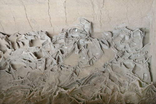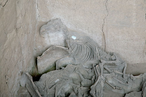 既然是车马坑,那马在哪儿呢?在这里,其车、马是分开埋葬的。与车坑一墙之隔处,几十匹马的遗骸终于被发现了。在紧贴坑壁的方向,遗留着一匹马仰着脖子挣扎的样貌,当年被埋入时的惨状依稀可辨。而车坑里,队员们清理出40辆车,其功能略有不同,用今天的话说,就像是“装甲战车”、“豪华彩绘车”等车型。这的确是顶级的葬制了。