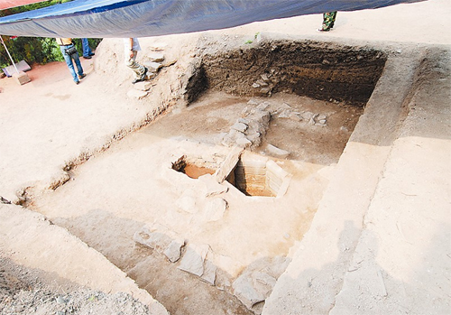考古工作从2008年夏天开始,一直延续到冬天结束,其间经过文物勘探和复杂的考古发掘过程。这次田野考古与以往有很大的不同,对于发掘对象的认识是随着考古工作的不断深入渐近清晰的,这一过程同时也带给发掘者超乎寻常的惊喜和意外,因为谁也没有想到会出现塔座基础,更不会估计到会有地宫、宝函出土。在经历了由墓葬考古向建筑遗址发掘的工作过度后,考古规模不得不进一步扩大,在发掘深度上明确了明清层、金元层和唐代地层,所揭露的范围也由中心向周围逐步扩展,最后终于完成整个建筑的发掘,即揭露出塔体基座的整体面貌。太山文管所修建蓄水池时发现的石门和石条正是位于塔基中心部位的地宫建筑。