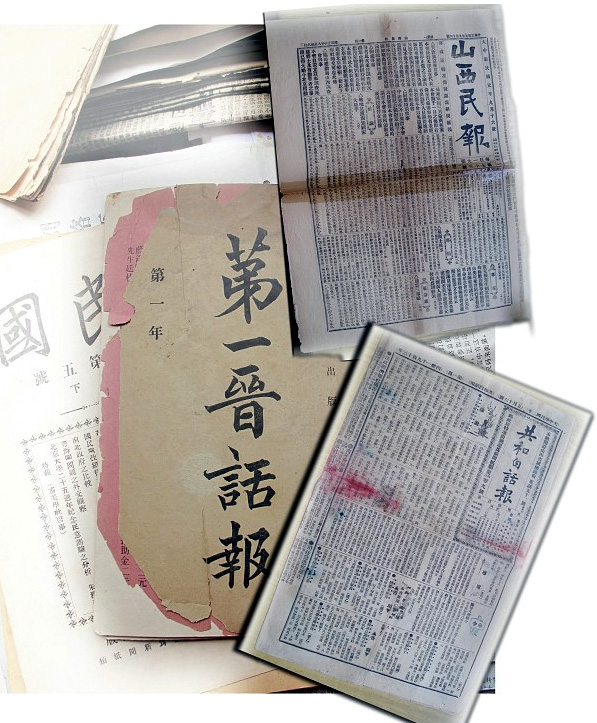 在我收藏的近五千种报刊中,辛亥革命前后出版的有三十多种,主要有《第一晋话报》、《新民国》、《共和白话报》、《山西民报》、《光复报》、《新民丛报》、《河东日报》等。