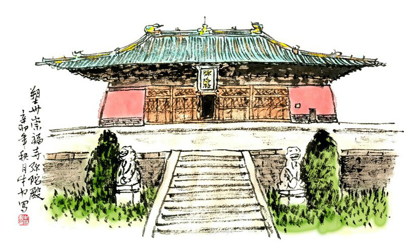 孙老步履敏捷,一步两个台阶迈上月台,绕过青烟缭绕的硕大香炉,就到了弥陀殿的屋檐下。四周1008枚檐铃,叮叮咚咚,清脆悦耳。