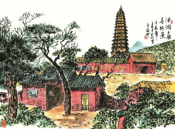广胜寺文管所解谭一副所长的办公室就设在广胜寺上寺,他告诉记者,“飞虹塔是在原阿育王塔旧址上重建的,这种将塔布置在寺院中轴线前端的布局,是汉唐以来固有的方式。”