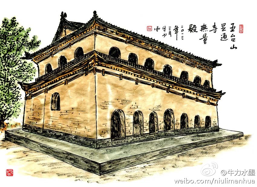砖券的显通寺无量殿,是寺内中轴线上自南而北第四座殿宇。据说,无量殿因取“佛法无量”之意而得名,又因该殿为唐代清凉国师撰述《华严经疏》的制疏道场,故名“七处九会殿”。此外,因殿内不用大梁和柱子,被俗称为“无梁殿”。