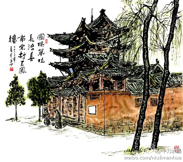 在长治县南宋村内,矗立着一座高耸参天的古代建筑玉皇观,五凤楼是该观的山门古楼。作为玉皇观的标志性建筑,五凤楼殿宇高耸,布局灵活,古朴雄浑,层层挑角远近层叠,华檐翠壁,光彩耀目。特别是楼身比例和谐,结构壮丽精巧,斗拱粗硕,出檐深邃,四角翼飞,寓意“五凤展翅”。