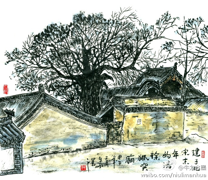 过了献殿,内院正中的三间大殿是狐突夫妇的寝宫。寝宫门前是一棵已有800多年历史的参天古槐。古槐树干粗壮,要三个大人才能合抱。年长日久,古槐已经和寝宫几近长为一体。