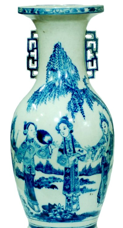 青花《拾玉镯》戏曲人物纹瓷瓶
