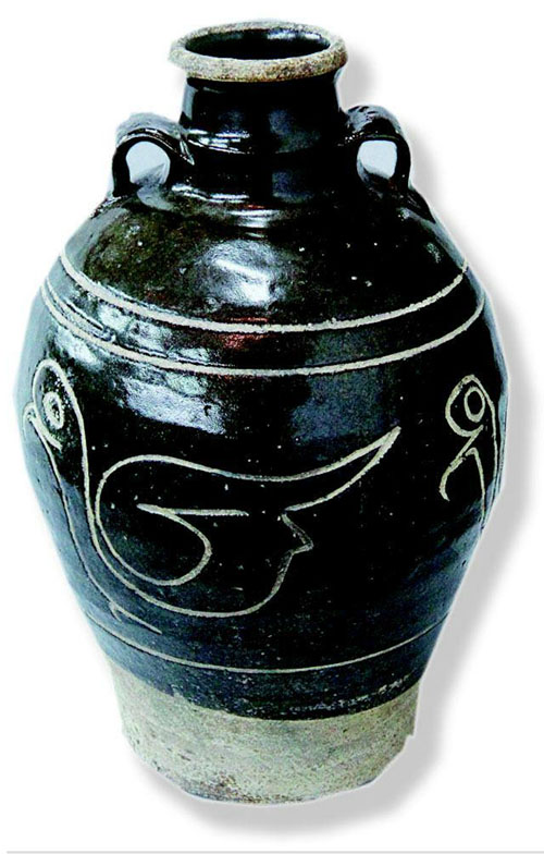 山西名窑珍品赏鉴系列09 浑源黑釉划花鸟纹双系瓶 |