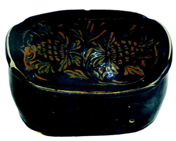古瓷窑名称:介休窑 品名:黑釉铁锈花瓷枕 年代:金 黑釉铁锈花瓷是山西瓷业极具艺术特色的瓷器品种,目前所见介休窑、乡宁窑、兴县炭烟沟窑、临县招贤窑之产品,器形工整,绘画生动,极为精美。 介休窑黑釉铁锈花瓷器装饰题材丰富,纹样有牡丹、菊花、游鱼等。这只牡丹纹瓷枕釉色漆黑、釉质光润,铁锈色花卉古朴、美观,极富审美意趣,是黑釉瓷中的精品佳作。 ■ |