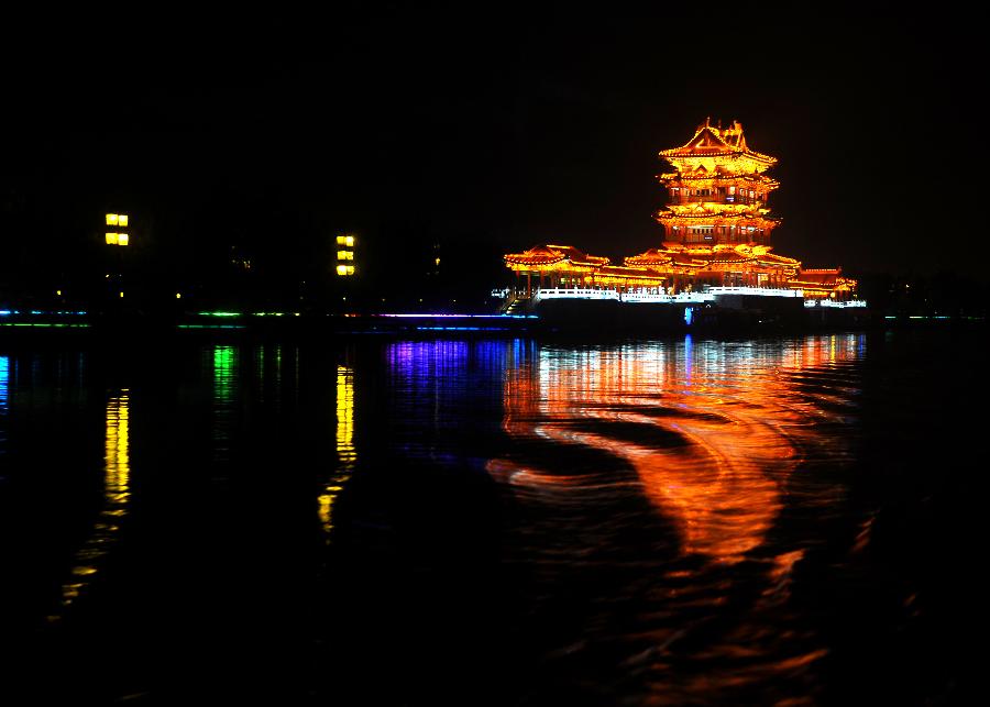 夜色中的临汾市望河楼,新华社记者燕雁2012年9月8日摄 |
