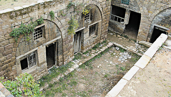 绕过池塘,出现了一排石窑,成规模的院落大概有三处。这些院落究竟住着什么人家?记者在城里见到了一位50多岁的男子,姓连,听说记者为探访古城而来,便答应带记者走一走。老连从小生长在古城,熟悉这里的一草一木,他带记者来到一处低洼的院落,“这是古时的县衙门”。院落里一字排开三间石头房,但并非传统的坐北朝南,记者试图寻找大堂所在,狭小的院落里除了地面是由整齐的条石铺成外,很难找到曾是主宰一方的县衙的踪迹。老连说,他小时候,这里还有木建筑遗存,这三间石房子的二层都是木质的楼层,由于自然和人力的破坏,现已损坏殆尽。
