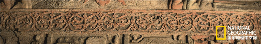 第6窟中由多个环形忍冬纹排列连结而成的整体图案,是源自古代希腊艺术的装饰母题。 |