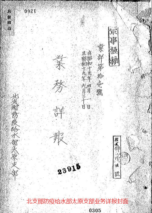 【档案名称】北支那防疫给水部太原支部业务详报(业详第十一号) 【档案形成时间】1944年4月1日-1944年9月30日 【档案来源】 「北支那防疫給水部隷下各支部関係·業務詳報(防衛省防衛研究所)」 【档案内容】对北支那防疫给水部太原支部在上述时间内进行的相关业务总结,包含该支部的位置、任务、隶属关系、平面布局、相关实验数据、实验报告等,内容十分丰富 |