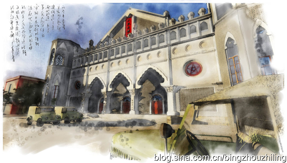 遗憾的是由于建筑的旧中国历史背景以及苏式会堂建筑的落成与使用,大礼堂逐步湮没,并于20世纪90年代难逃拆毁的命运。值此抗战胜利70年、自省堂落成95周年之际,我们将目光重新聚焦这里时,却发现只能通过文献档案与历史照片拼贴那段岁月了。特此绘制“最高人民法院特别军事法庭(太原)审判地复原图”以为纪(图1)。 注:感谢博友湖蓝海夜空为人民大礼堂复原图绘制提供的历史细节支持 |