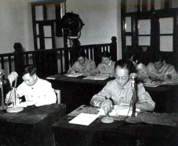 最高人民法院特别军事法庭在太原于1956年6月10~11日对富永顺太郎的侵华战争罪和特务间谍罪;6月12~20日对前日本军政人员城野宏等 8名战犯的侵华战争罪和反对中国人民解放战争罪进行了审判,这标志着山西自1945年9月13日接受日酋澄田象征性投降11年后中国政府代表饱受日寇蹂躏的三晋百姓对侵晋日军及其留用罪行的彻底清算。 最高人民法院特别军事法庭太原法庭设立在文瀛湖畔东南隅的人民大礼堂。这里成为见证这一具有里程碑意义事件的重要建筑地标。陈弘先生展示的法庭开庭通知及其在太原法庭现场翻译的庭审照片为我们了解那段历史提供了珍贵的史料(图2,参见阎崑先生博文《我亲历了对日本战犯的审判》一文)。 |