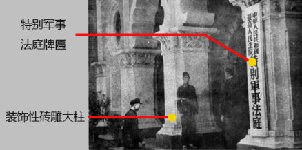 图4.悬挂特别军事法庭牌匾的砖雕特色门洞 |