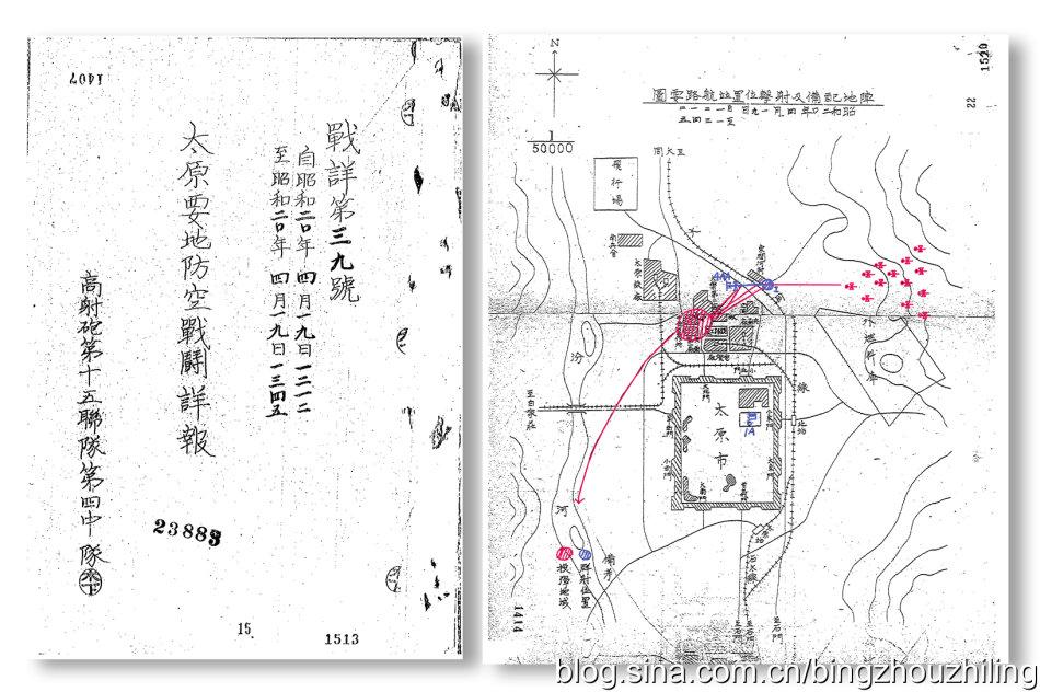 【档案来源】 a.c.美国陆军航空兵; b.JACAR(アジア歴史資料センター)Ref.C13032185000高射砲第15联队第4中队榆次太原要地防空战斗详报