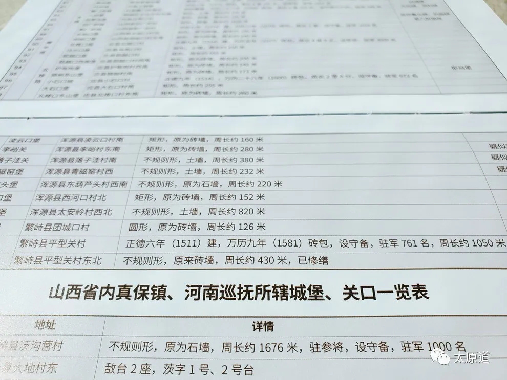 《长城·民族魂》 详尽统计汇总表格4张 《山西长城地域分布表》 《山西长城时代分布表》 《明山西镇主要城堡关口一览表》 《山西省内真保镇、河南巡抚所辖城堡关口一览表》 为长城爱好者实地考察提供精确指引 |