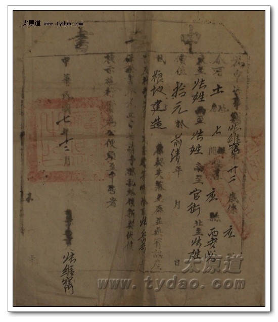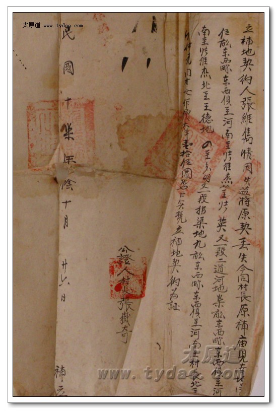 民国十七年(公元1928年)阴历十月二十六日,祖父因为失盗丢失原契,以村长张岳奇为公证人补立地契并加盖了县府大印。 |