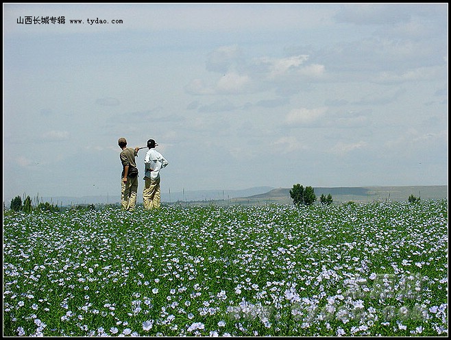 长城两侧遍种胡麻,淡蓝色的小花开遍原野