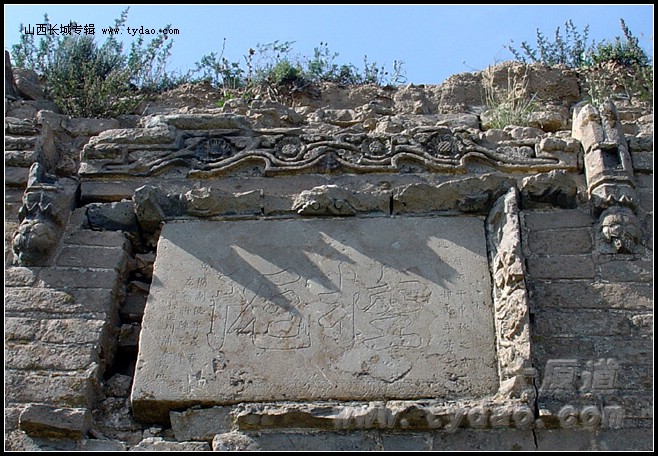 在空心敌楼的拱门上,保留着精美的砖雕门匾,落款是“万历丙午中秋之吉”,也就是399年前的同一个月圆之日,大明王朝的巡抚都尉使李景元、兵备副使李茂春、左参将陈天爵、管粮通判蒲嘉伦和今天的我们一样迎着雁门的朔风跋涉在这里,399年,今又中秋,古人不见今时月,今月曾经照古人,前方不远处,依稀是他们渐行渐远的模糊背影