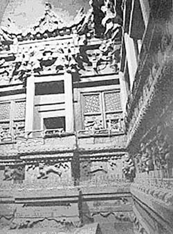 现在保存下来的宋金时期建筑物已经很少,就是有,也是经过不止一次修缮的,何况普通民房?是故墓葬里雕刻对于研究和欣赏古建筑是不可多得的实物模型。除外,反映的朴素淳厚民间风俗,镇宅狮顽皮可爱,透露着“事事如意”的情怀;沉默寡言的门神,立于大门左右,负责守卫院落的安全。走进墓室,迎面而来的是簇簇牡丹,间以“出于污泥而不染”的荷花、寓意多子多福的石榴,真是花的世界。中国一直就有以牡丹象征富贵的传统。动物雕刻中,与“禄”同音的鹿的形象就更多了。