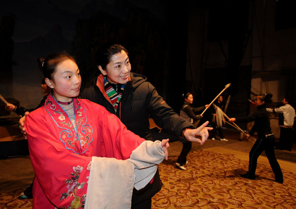 胡嫦娥在指导学员练习基本功(2009年12月18日摄)