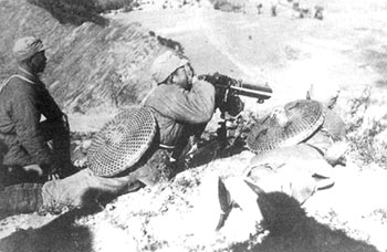 日军的装备好,他们的士兵枪法很准。我军的火力压不住敌人的火力,冲上去的三营战士倒下一大片。