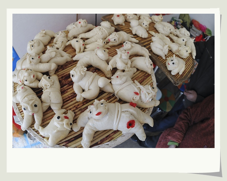 岚县文化局局长梁秀峰告诉记者,面塑就是用白面捏制成的各式造型,兴于明代,盛于清代,是山西的一项传统技艺。每逢农历二月十九,各家各户都会把精心制作的面塑摆放出来,举行礼祭仪式。